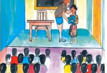 In the story, a teacher gives a poor girl a clean blue dress. That small gift brings big changes—not just in the girl's life, but also in her family and their street. This shows how one small act can make a big difference. This message touched our founder’s heart. It taught us that small efforts can create big changes, and that’s the idea behind our work today.